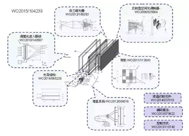 SEEREAL基于自己獨特的設計思路,對整套全息顯示設備進行了全方面的專利保護。上圖僅示例性地說明了SEEREAL對全息顯示設備各部件進行的專利布局。