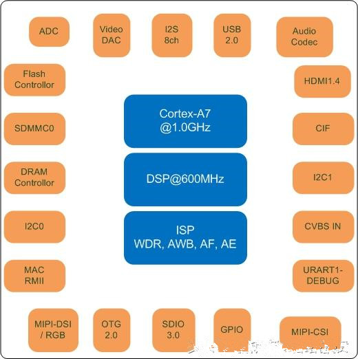 5、高集成、高擴展:支持多Camera sensor輸入,HDMI OUT/CVBS OUT/CVBS IN/Audio Codec。