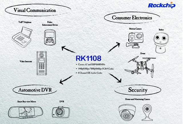 瑞芯微RK1108具備強大的開放性和可編程,可為合作伙伴提供多樣化的產品思路和方向??蓮V泛應用于汽車、安防監控、家用輔助機器人、運動相機、無人機等領域。