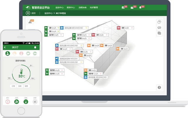 農業物聯網監控系統通過在生產現場部署傳感器、控制器、攝像頭等多種物聯網設備,借助個人電腦、智能手機,實現對農業生產現場環境指數實時監測展示、自動報警提醒,同時實現遠程自動控制生產現場的灌溉、通風、降溫、增溫等設施設備。該系統的使用可減少人工成本,實現精準調控,有效規避生產風險。