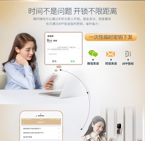 上文提到的一次性密碼需要單獨記憶,而現如今很多智能鎖都可以進行遠程連接。于是很多廠家就將遠程連接(非遠程開門)加入到智能鎖的功能中,而“遠程臨時密碼”功能就是代替“遠程控制”的功能。