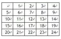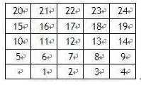 理線表是一張人為定義的表格,當(dāng)使用24口配線架2可以使用5×5理線板,該理線表為5行5列的表格,每個(gè)單元格對(duì)應(yīng)一個(gè)孔。理線表的填寫方法可以有多種,每種填寫方法對(duì)應(yīng)于一種排列順序。在下圖中介紹了其中一種排列順序(孔內(nèi)數(shù)字代表配線架上的模塊編號(hào)),它的特點(diǎn)是在配線架背后的每根線全部水平平行排列。