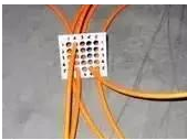理線板是一塊25孔方板(對(duì)應(yīng)于24口配線架的合適尺寸5×5孔理線板,也可以選用4×6、8×8等規(guī)格),單面寫字,每孔可以穿1根水平雙絞線。可以想象:當(dāng)雙絞線穿入理線板后,彼此之間的相對(duì)位置就基本固定,根據(jù)其位置進(jìn)行綁扎時(shí)不容易出現(xiàn)大的錯(cuò)位現(xiàn)象,更不易出現(xiàn)線纜的交叉現(xiàn)象。