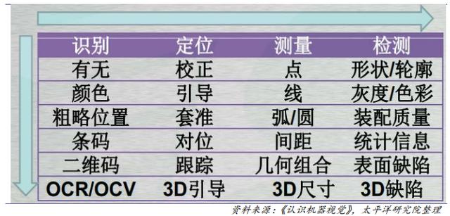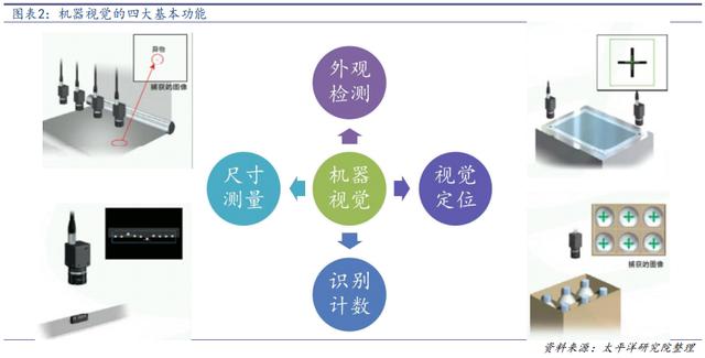 目前,機(jī)器視覺的基礎(chǔ)功能主要可以分為四大類:模式識別/計(jì)數(shù)、視覺定位、尺寸測量和外觀檢測,當(dāng)前的應(yīng)用也基本是基于這四大類功能來展開。