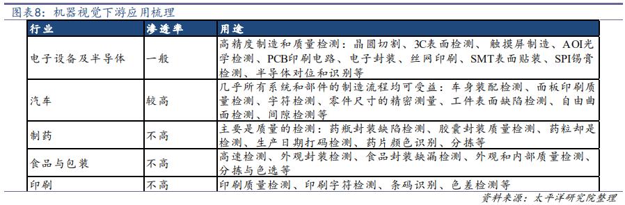 機(jī)器視覺廣泛應(yīng)用于電子及半導(dǎo)體、汽車制造、食品包裝、制藥等領(lǐng)域,其中電子汽車和電子是當(dāng)前機(jī)器視覺最重要的應(yīng)用領(lǐng)域。