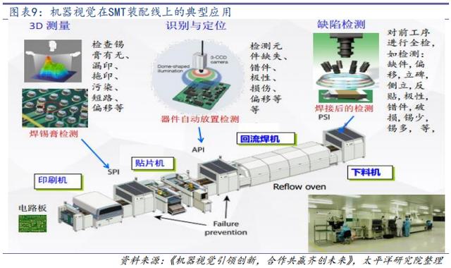 根據(jù)前瞻研究院數(shù)據(jù),電子行業(yè)貢獻(xiàn)了機(jī)器視覺近50%左右的需求,主要用于晶圓切割、3C表面檢測、觸摸屏制造、AOI光學(xué)檢測、PCB印刷電路、電子封裝、絲網(wǎng)印刷、SMT表面貼裝、SPI錫膏檢測、半導(dǎo)體對位和識別等的高精度制造和質(zhì)量檢測。以iPhone為例,其生產(chǎn)全過程就需70套以上系統(tǒng)。未來在全球智能手機(jī)、平板電腦和可穿戴設(shè)備等消費(fèi)電子領(lǐng)域的需求有望爆發(fā)。