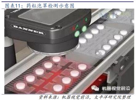 根據(jù)前瞻研究院數(shù)據(jù),制藥行業(yè)貢獻(xiàn)了機(jī)器視覺7%左右的需求,主要應(yīng)用在藥瓶封裝缺陷檢測、膠囊封裝質(zhì)量檢測、藥粒卻是檢測、生產(chǎn)日期打碼檢測、藥片顏色識別及分揀等。目前大多數(shù)企業(yè)流水線上有1-2套機(jī)器視覺系統(tǒng),而實(shí)際需求至少應(yīng)該在5處,未來隨著制藥行業(yè)自動化升級改造提速,滲透率會持續(xù)提升。