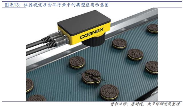 食品及包裝也是機(jī)器視覺應(yīng)用的重要下游領(lǐng)域,主要用于高速檢測、外觀封裝檢測、食品封裝缺漏檢測、外觀和內(nèi)部質(zhì)量檢測、分揀與色選等,單條產(chǎn)線用量在不同產(chǎn)品中差異較大。目前機(jī)器視覺在大型食品企業(yè)(如伊利、蒙牛)中應(yīng)用較多,而在行業(yè)整體的滲透率并不高。