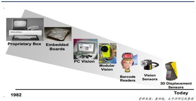 機(jī)器視覺技術(shù)從1980s開始逐步產(chǎn)業(yè)化,經(jīng)歷了基于PC的視覺系統(tǒng)、模式視覺系統(tǒng)、條碼掃描視覺系統(tǒng)、視覺傳感器,發(fā)展到目前最先進(jìn)的結(jié)合AI以及深度學(xué)習(xí)的3D視覺系統(tǒng),技術(shù)的持續(xù)進(jìn)入不斷釋放下游需求,推動機(jī)器視覺行業(yè)成長。