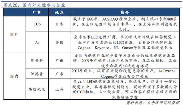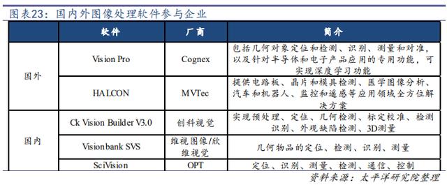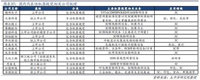 值得注意的是,近年來隨著國內(nèi)面板、光伏、動力電池以及半導(dǎo)體產(chǎn)能的大規(guī)模上產(chǎn)和升級以及設(shè)備國產(chǎn)化的要求,國產(chǎn)廠商也逐漸在面板、光伏以及鋰電中有較多應(yīng)用。不過國產(chǎn)廠商的應(yīng)用基本集中在專用設(shè)備的組裝和產(chǎn)線集成,在機(jī)器視覺中上游布局很少。