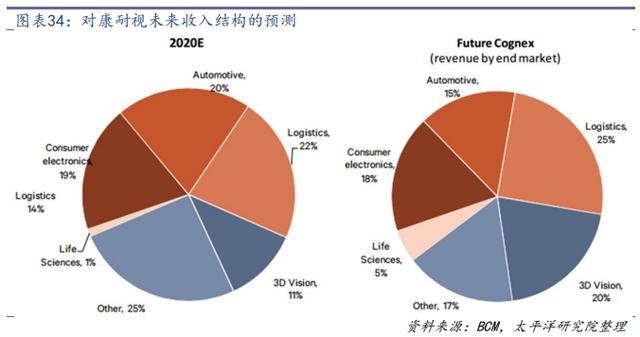 從市占率來看,目前公司在幾個主要下游中已經(jīng)處于行業(yè)領(lǐng)導(dǎo)者地位,在工業(yè) 2D機(jī)器視覺領(lǐng)域市占率為 25%、在 ID 及工業(yè)識別領(lǐng)域市占率為 15-20%、在物流及生物科技領(lǐng)域市占率為 15-20%、在 3D 機(jī)器視覺領(lǐng)域市占率為 10%。