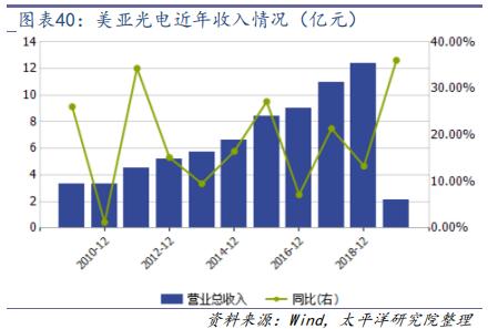 美亞光電以色選機(jī)業(yè)務(wù)起家,后逐步進(jìn)入醫(yī)學(xué)影像設(shè)備(主要是口腔 CBCT 和即將推出的口掃椅旁系統(tǒng)),目前已經(jīng)成為國內(nèi)色選機(jī)龍頭企業(yè),并為口腔醫(yī)學(xué)影像設(shè)備國產(chǎn)化領(lǐng)先企業(yè)。2018 年,公司 12.4 億元,同比增長 13.33%,其中色選機(jī) 8.1 億元,同比增長 5.94%,口腔 CBCT3.71 億元,同比增長 42.65%;2018 年公司實(shí)現(xiàn)歸母凈利潤4.48 億元,同比增長 22.82%。