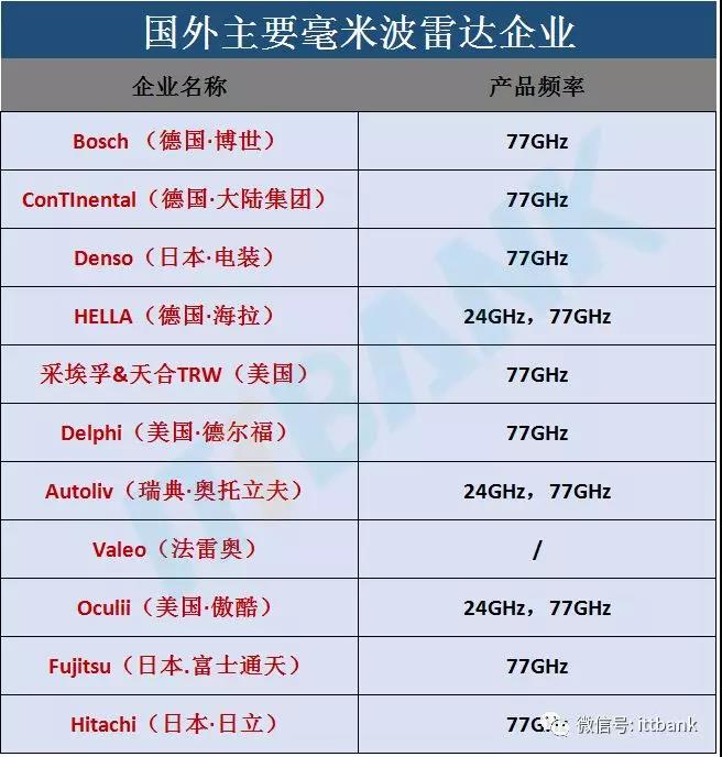 目前國內市場上24GHz毫米波雷達的產品體系已經相對成熟,供應鏈已經相對穩定,24GHz的核心芯片射頻芯片能從英飛凌、飛思卡爾等芯片供應商獲得。