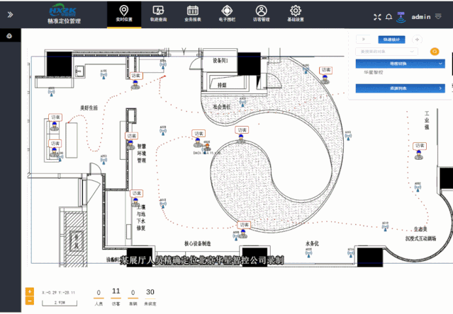如下圖所示為某展廳人員定位效果圖,實(shí)時(shí)顯示訪客的位置,記錄參觀軌跡,實(shí)現(xiàn)互動(dòng)講解等功能。