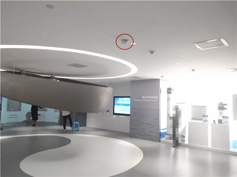 如下圖所示為現(xiàn)場的定位基站安裝圖,定位基站的安裝需要結(jié)合實(shí)際情況布設(shè),不同的展廳不同的定位效果需要的基站數(shù)量不同,同樣面積的展廳需要的基站數(shù)量也不一樣。