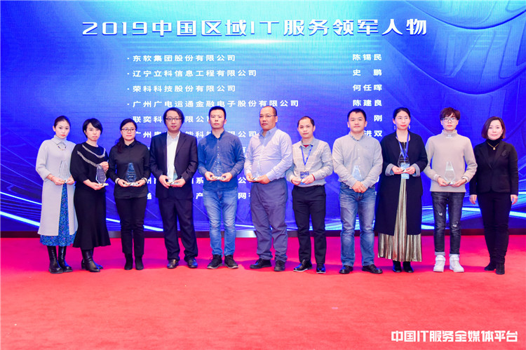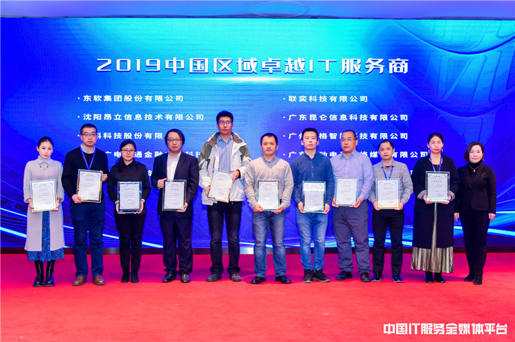 2019中國區域卓越IT服務商頒獎— (右三) 廣東互動執行總經理劉展航上臺領獎