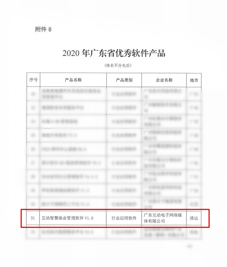 近日,從廣東軟件行業協會發布了“關于2020年廣東省優秀軟件產品和服務評審結果的公示”悉知,經過了專家委員們的層層選拔。我司“互動智慧漁業管理軟件VI. 0”,憑借架構的先進性和市場的良好反饋,榮獲“2020年廣東省優秀軟件產品”獎。獲得此獎項充分證明了市場和用戶對我司產品的認可。未來,廣東互動將結合用戶實際需求做出更多優秀的產品,也進一步提高企業創新能力和核心競爭力,為廣大用戶創造更多的價值。