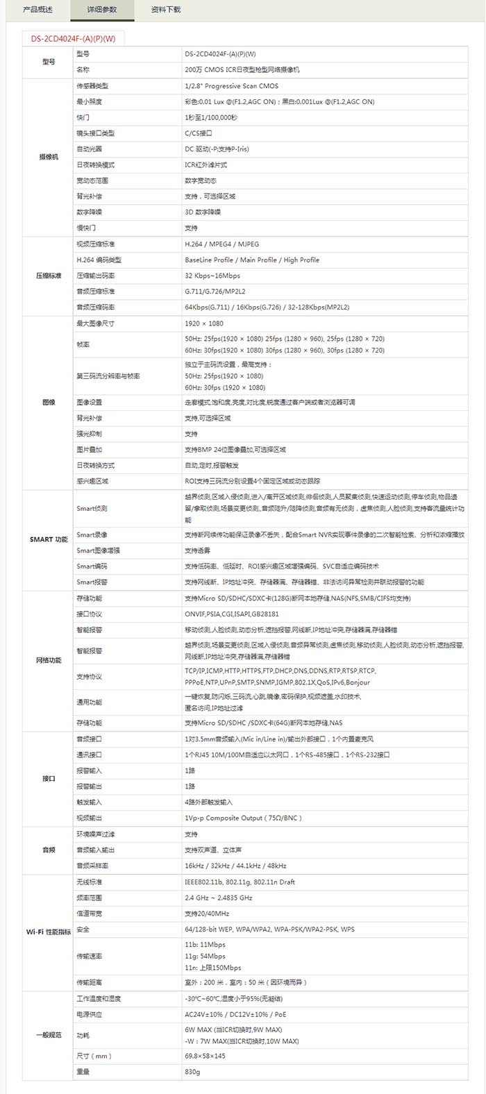Smart IPC > 200萬像素槍型網絡攝像機DS-2CD4025FWD-(A)(P)